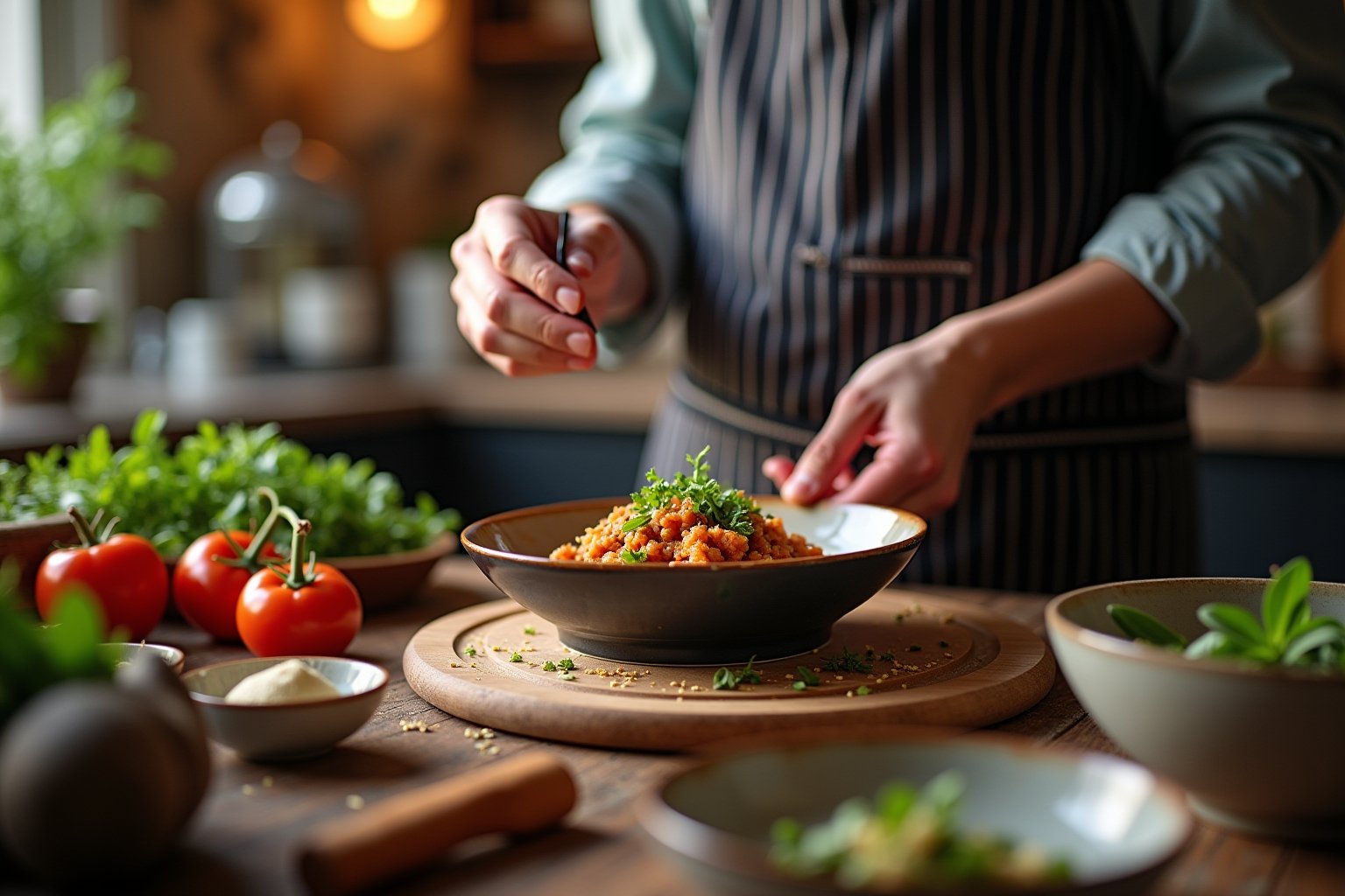 Bei pflanzlichen Speisen ist die Würzkunst besonders wichtig, um tiefe Geschmacksschichten zu erzeugen. Verwenden Sie Räucheraromen wie geräuchertes Paprikapulver oder Chipotle, um fleischige Noten zu simulieren. Umami-Verstärker wie Hefeflocken, fermentierte Pasten (Miso) oder getrocknete Pilze verleihen pflanzlichen Gerichten Tiefe und Fülle. Experimentieren Sie mit verschiedenen Texturkontrasten durch knusprige Elemente wie geröstete Gewürze und Nüsse. Bei Hülsenfrüchtgerichten harmonieren mediterrane Kräuter wie Thymian und Rosmarin mit Kreuzkümmel oder Koriander. Für Gemüsepfannen eignen sich frische Kräuter wie Petersilie, Dill oder Basilikum, die kurz vor dem Servieren zugegeben werden. Die Kombination aus erdigen, scharfen, säuerlichen und süßen Aromaelementen schafft ein ausgewogenes Geschmacksprofil für pflanzenbasierte Mahlzeiten.